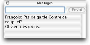 Pendant la plupart des phases de jeu, tous les joueurs ont la possibilité denvoyer des messages visibles par tous et cela en sélectionnant AFFICHER LES MESSAGES dans le sous-menu RESEAU du menu FICHIER (ou plus rapidement Cmd-M).