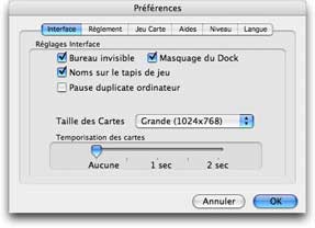 Une pause de 0 à 2 secondes lors de la pose de chaque carte peut être choisie.