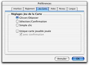 Si au cours dun pli, une seule et unique carte peut être jouée, celle-ci sera jouée automatiquement par lordinateur suivant le réglage de cette option. Lutilisateur aura ou non la possibilité de confirmer suivant le réglage de loption sous-jacente avec confirmation.