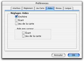 Si lutilisateur a demandé cette aide, chaque fois que le ou les joueurs humains doivent jouer une carte, lordinateur proposera la carte quil jouerait sil contrôlait ce joueur. Lutilisateur a alors la possibilité soit de confirmer le choix de lordinateur en cliquant sur cette carte, soit de sélectionner une autre carte.
