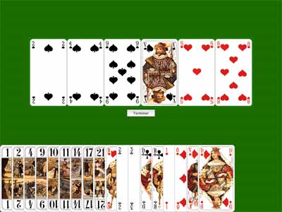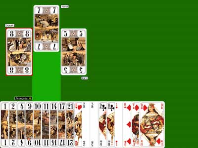 A laide de la souris (curseur main), lutilisateur doit sélectionner les 6 cartes de son Écart qui apparaîtront au centre de lécran. Il peut à loisir modifier cet Écart en cliquant sur une des cartes.