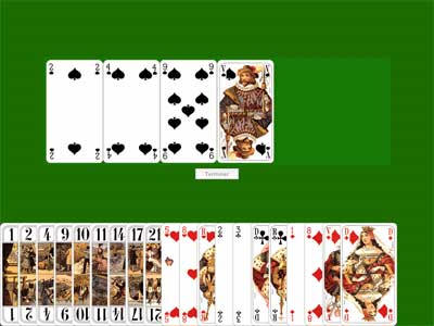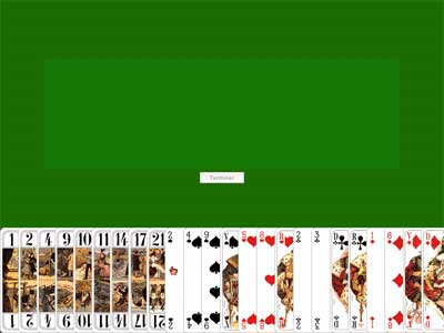 Sélection/Confirmation: le curseur se transforme en main au-dessus dune carte autorisée. En cliquant sur la carte, celle-ci apparaît dans lemplacement réservé au joueur. Si le joueur désire modifier son choix, il lui suffit de sélectionner une autre carte.